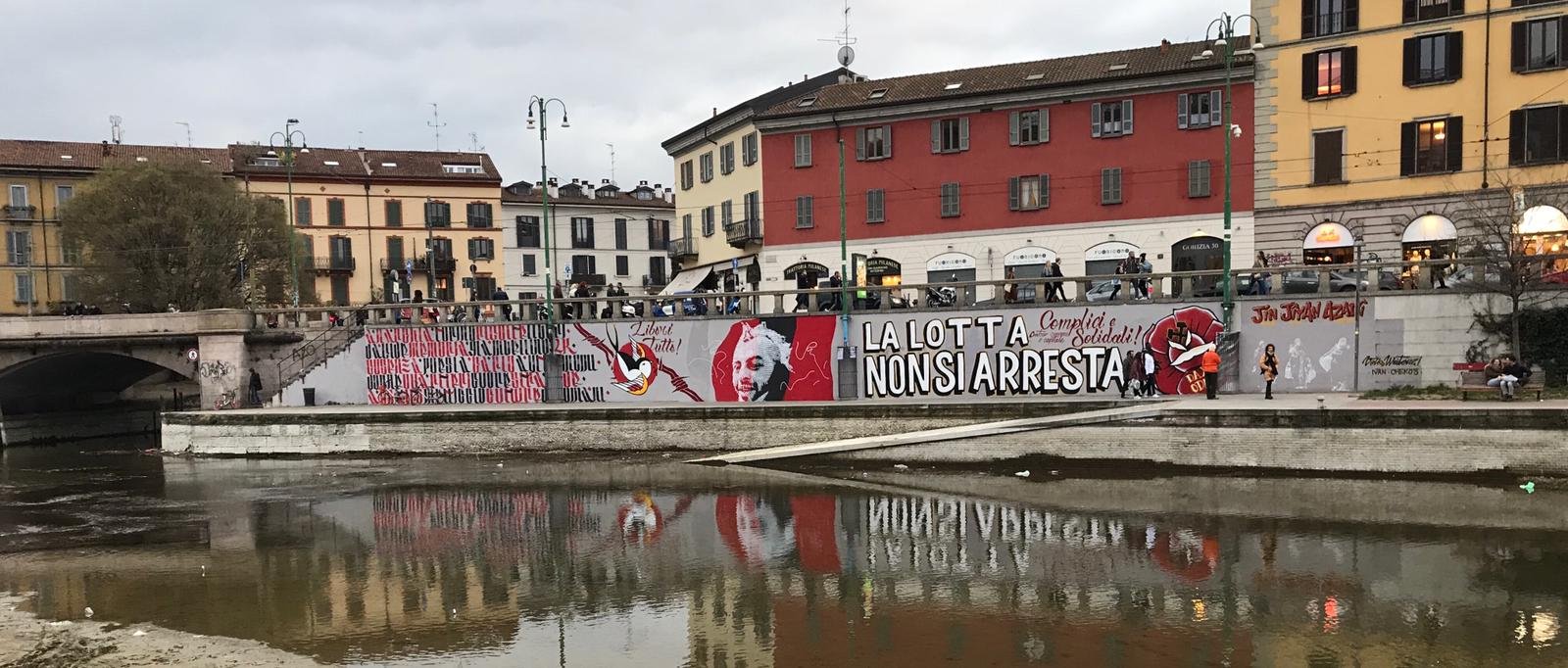 Un muro, quello della Darsena di Milano, da sempre esempio di muralismo e memoria cittadina fin dai primi anni ’70; uno spazio che ieri era un luogo di racconto ed espressione libero nella nostra città, oggi sottratto con il ricatto ai compagni ed agli artisti di Milano, promesso con l’inganno dalle ultime due giunte politiche e mai riconsegnato davvero alla città. Perchè anche scrivere la nostra storia per le strade, in tutte le sue forme, è il motivo per cui stiamo insieme e resistiamo di fronte alla barbaria dell’autorità.