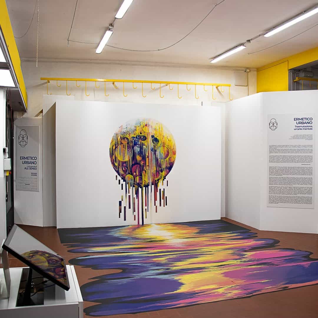 Il 18 ottobre 2025 ha segnato proprio questo: un ritorno. Quello di Ale Senso a Ponte San Pietro, in provincia di Bergamo (la “sua” Bergamo), dove trent’anni fa realizzava il suo primo murale ufficiale. Oggi, nello stesso luogo, ha inaugurato la sua mostra personale “Ermetico Urbano”, ospitata nel nuovo spazio espositivo Ex-Vavassori del Musei dello Smalto fino al prossimo 22 novembre. Un cerchio che si chiude o, meglio, che si trasforma.