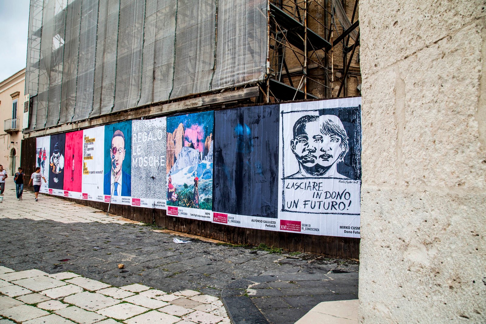 Le 25 opere scelte sono successivamente state stampate su carta poster e inserite in un’installazione pubblica in piazza Duomo a Lucera. Essa ha poi fornito il naturale sfondo dell’ultimo incontro che ha chiuso il festival, quello tenuto da VladyArt e da Antonio Inzalaco di Cufù Festival con un focus completamente dedicato all’arte urbana. “Questo contest – hanno chiosato gli organizzatori – vuole essere creatività che deborda, che diventa segno, invito, ponte e messaggio. Vogliamo trasformare Lucera in un museo a cielo aperto, utilizzando ogni linguaggio e forma espressiva (musica, teatro, fotografia, street art e performance artistiche) per abbattere stereotipi e realizzare incontri attraverso scritture e visioni comuni», dichiarano gli organizzatori del Festival della Letteratura Mediterranea che da ben 15 anni ospita e fa incontrare a Lucera artisti e intellettuali provenienti dai paesi del bacino Mediterraneo”.