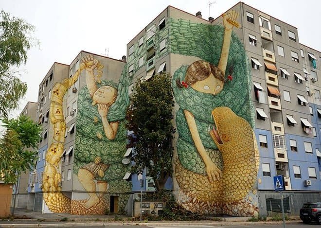 Andreazza e Uman. Accanto a loro, ci sono anche numerosi muri realizzati in Italia da artisti stranieri, a testimonianza del forte richiamo internazionale dei festival di Street Art italiani. Tra questi: Megan Oldhues per GranitiMurales a Graniti (Sicilia), Kitsune per Gulìa Urbana a Crotone (Calabria), BubleGum per LuceFest a San Pietro (Calabria), Epod e Daniela Guerreiro per StraMurales a Stornara (Puglia), Taxis per 167bStreet a Gallipoli (Puglia), Fred Battle per SanPart a Bari (Puglia), Snik per Cvtà Street Fest a Civitacampomarano (Molise) e Aryz per MuraLi a Livorno (Toscana).