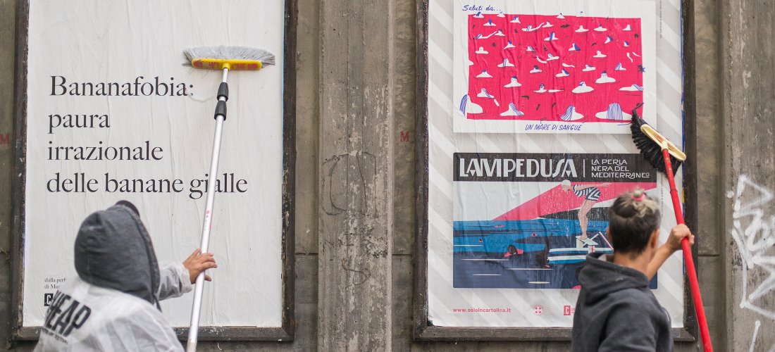 A breve distanza dall’ultimo intervento bolognese, CHEAP torna alla carica con un nuovo progetto, questa volta incentrato su un altro bel temone non da poco. Il progetto si chiama “Saluti dal Mar Mediterraneo” e tutti i manifesti affissi in via Irnerio nella capitale emiliana fanno parte di Solo in cartolina, la campagna di denuncia contro le morti in mare lanciata da un gruppo di giovani creativi italiani per raccontare ciò che succede al largo delle nostre coste e sostenere chi ogni giorno salva le vite dei migranti.