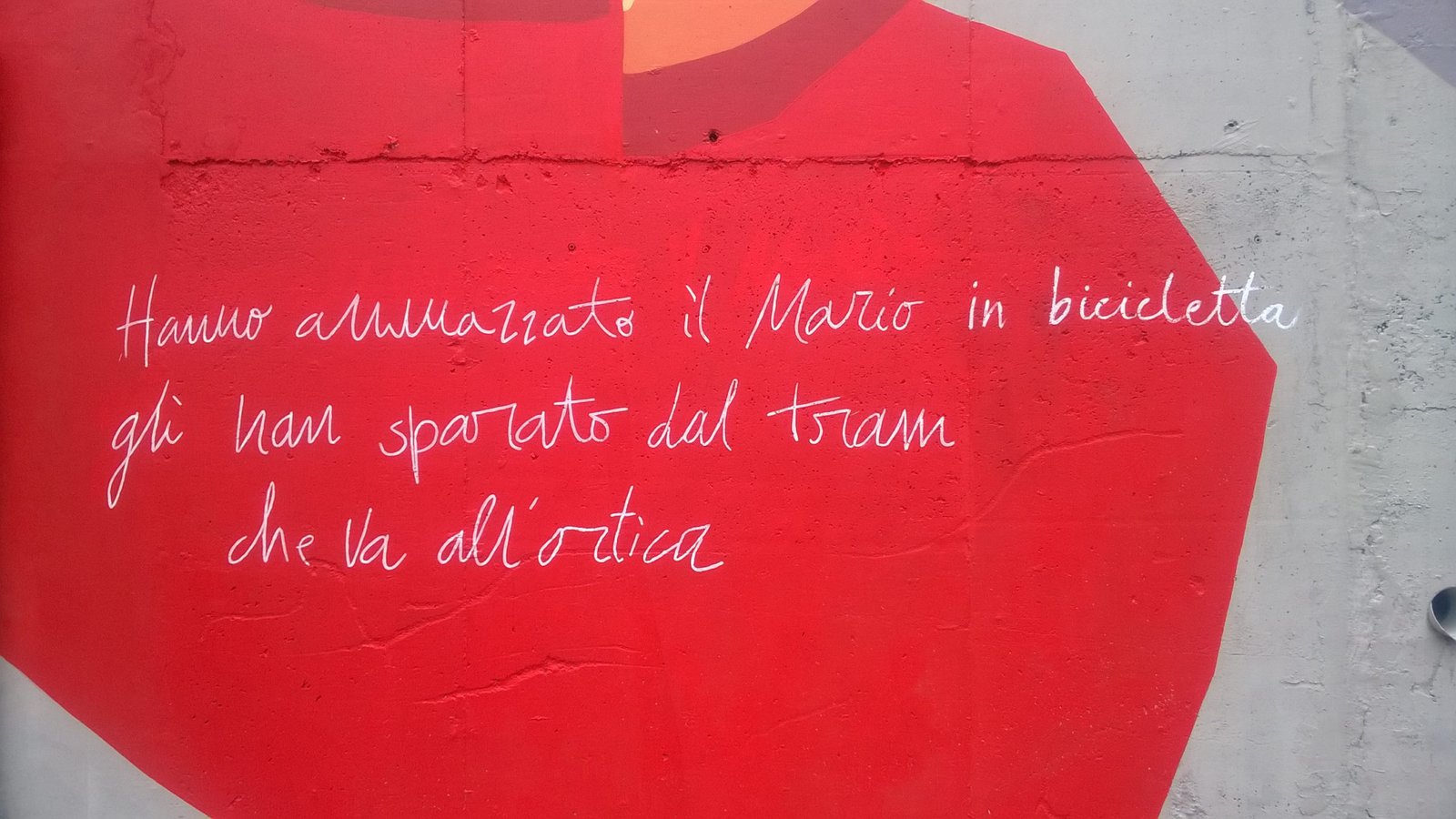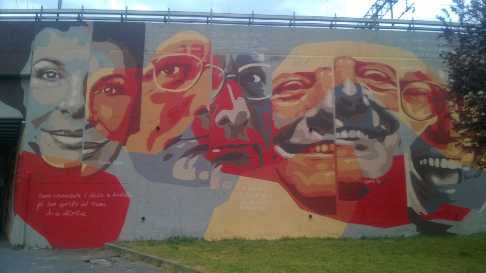 La seconda tappa è quella all’Ortica: e chi poteva lavorarci, se non gli Orticanoodles? Qui, tra via San Faustino e via Rosso di San Secondo, il duo composto da Walter Wally Contipelli e Alessandra Montanari ha realizzato la grande opera “Ma mì” che raffigura i volti di sette protagonisti della cultura meneghina (Nanni Svampa, Ornella Vanoni, Enzo Jannacci, Giorgio Strehler, Dario Fo, Ivan Della Mea, Giorgio Gaber) con relative frasi storiche. Nato da un’idea della sezione dell’Anpi Ortica (da qui l’idea del rosso che campeggia su tutta la murata), il murale ha coinvolto la Cooperativa Edificatrice dell’Ortica e il liceo linguistico Manzoni: agli alunni dell’istituto gli Orticanoodles hanno insegnato la tecnica rinascimentale dello spolvero, nata con Michelangelo, e riutilizzata dagli stessi artisti nelle loro più grandi (e belle) opere.