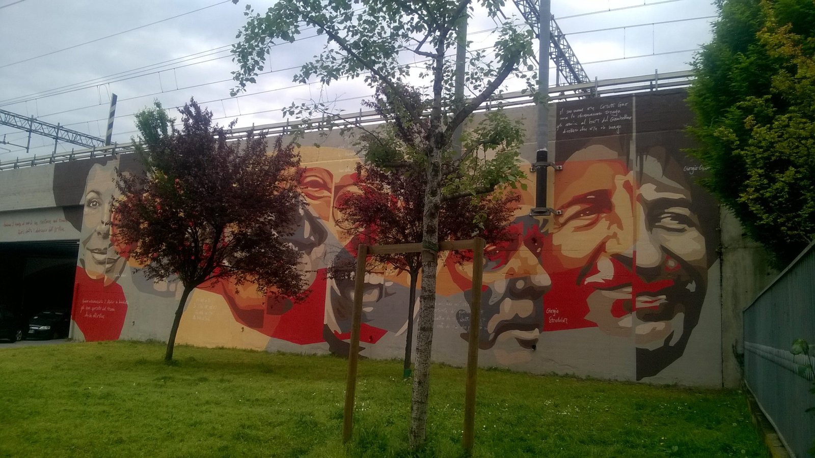 Ironia della sorte quel murale ha annunciato, senza che i suoi autori potessero prevederlo, la tragica fine del giovane writer Svyatoslav Slav Naryshev, morto a 19 anni travolto da una treno proprio nella vicina stazione di Greco Pirelli, mentre realizzava un pezzo con un amico. Da qui l’idea di Alessandro Riva: “Che quel muro sia almeno dedicato a Slav, allora. E che, all’inaugurazione, non stiano tutti lì ad abboffarsi di tartine e a bere il solito frizzantino e a scambiarsi le solite futilità sul sistema dell’arte, ma pensino per un momento – un momento soltanto – a Svyatoslav e a tutti quelli come lui, che nell’arte pubblica ci credevano davvero”.
