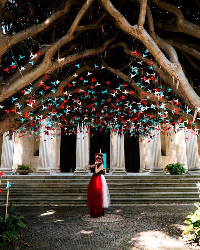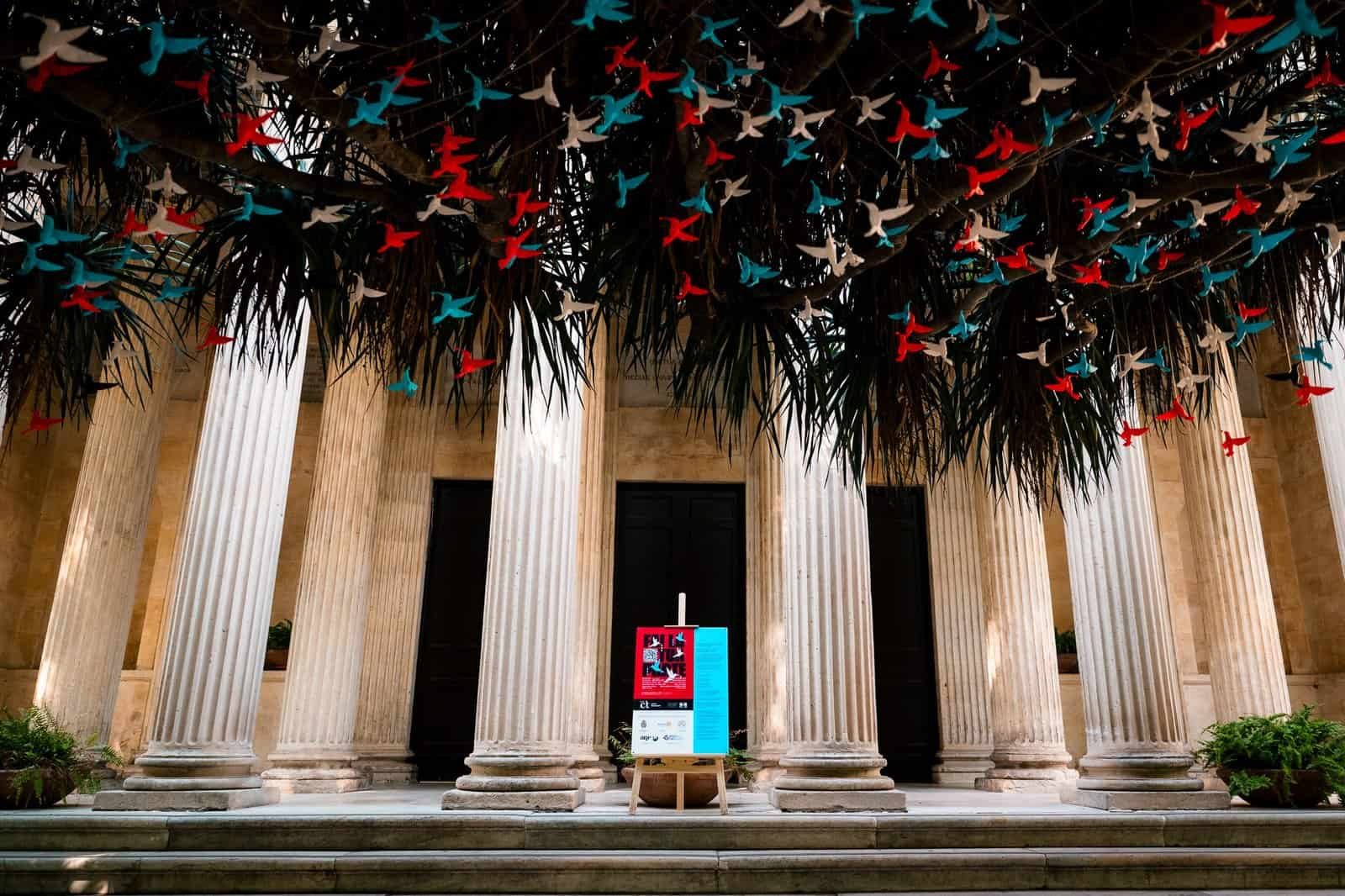 La scelta cromatica dei colibrì non è casuale: rosso e azzurro richiamano i colori di Catania, mentre bianco e nero simboleggiano la dualità tra guerra e pace. L’installazione è stata arricchita da una sezione interattiva, che permette ai visitatori di ascoltare la storia del colibrì e di immergersi nel significato dell’opera.
