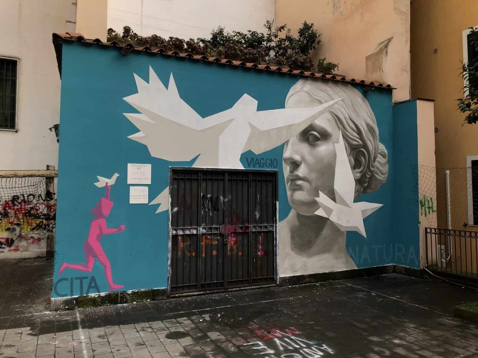 L’opera di Valiante e Bislak prosegue il mantra di “Muri D’Autore” per cui la poesia è interpretata in senso artistico e grafico come elemento di valorizzazione urbana. Nello specifico, i due artisti reinterpretano per poetica e stile il tema della libertà come portatrice di sentimenti e visioni: un viaggio dalla leggerezza della fanciullezza alla malinconia dell’essere adulti. Un vero e proprio percorso di riflessione sul diventare grandi, tra gioie e dolori. Iconograficamente Valiante e Bislak realizzano delle ali create con segni grafici volutamente infantili per rappresentare la libertà e la spensieratezza dell’infanzia. Alla fanciullezza si contrappone una scultura di donna tipicamente classica: metafora dell’età adulta dell’umanità e di un’anima e di un corpo forgiati e plasmati dal tempo e dall’esperienza.