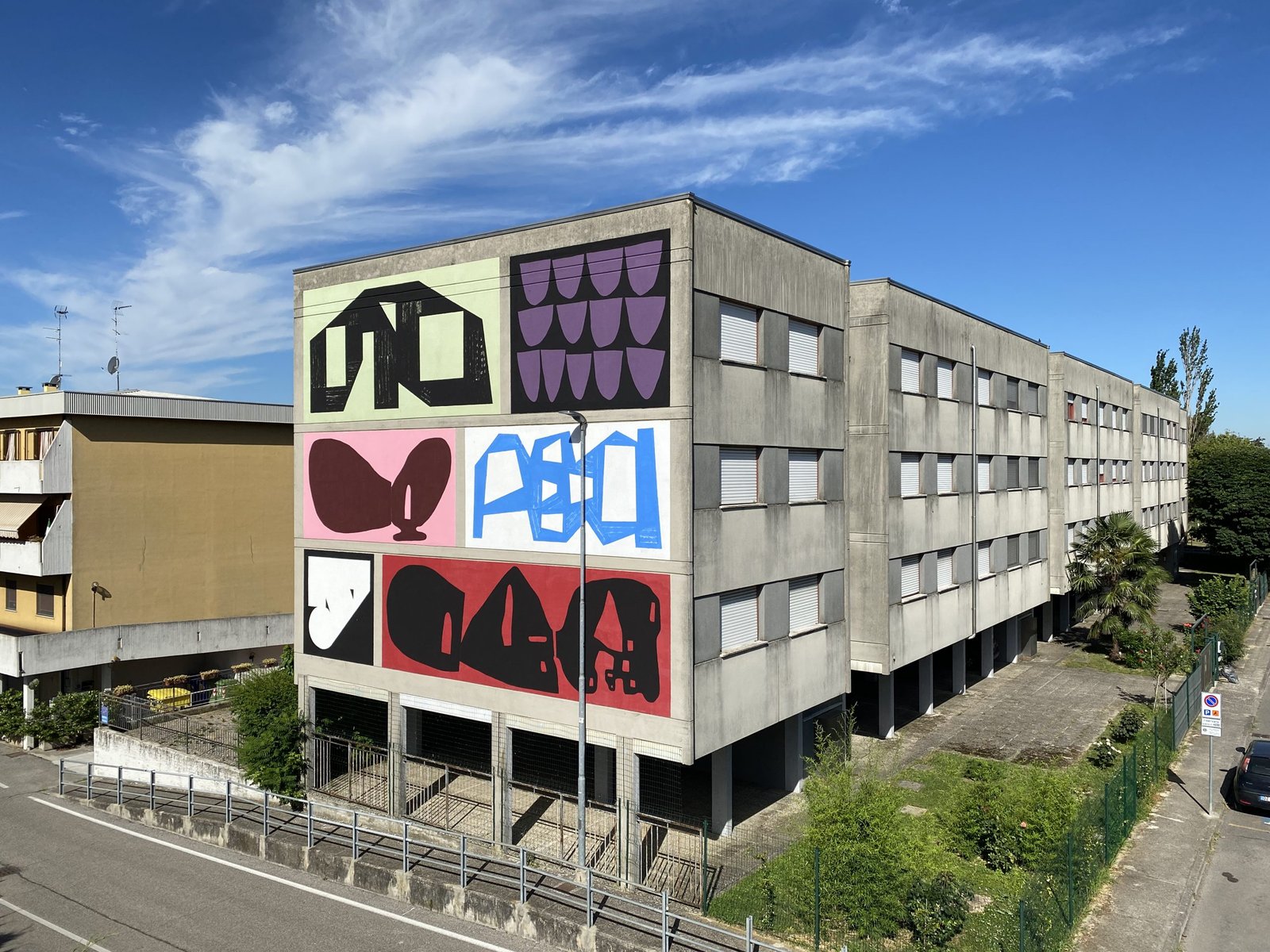 L’artista olandese e quello alessandrino hanno così lavorato all’evoluzione della lettera, oggetto di studio del proprio personale percorso artistico che nasce nell’alveo del Graffiti Writing e si evolve fino all’estremo: nel loro intervento per Without Frontiers, Lunetta a Colori Erosie e 108 hanno così scomposto, mutato e riunito le loro lettere in forme astratte e simboliche, in grado di fondersi e, forti delle reciproche specificità, di esaltare ciascuno stile. Non solo. Grazie anche alla posizione strategica dell’edificio, visibile da più punti del quartiere Lunetta e rivolto verso il centro storico, il loro lavoro definisce simbolicamente l’unione fra Lunetta e il centro di Mantova, andando così a creare un ponte e destrutturando la tradizionale funzione divisoria dei muri.