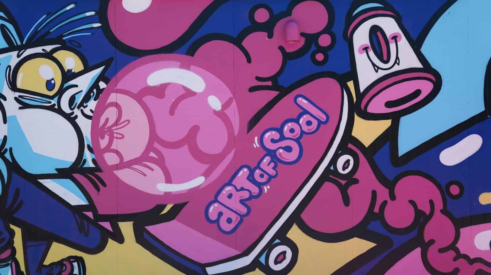Nel cuore pulsante di Ostia, tra rampe, rail e trick, c’è un luogo che da oltre vent’anni è molto più di uno skatepark. The Spot, infatti, è un presidio sociale, un’oasi di legalità e creatività urbana, dove lo sport incontra la cultura e l’arte prende forma in modo spontaneo, autentico e inclusivo. Ed è proprio qui che, nel weekend, è esploso un nuovo intervento di Arte Urbana, sponsorizzato da Big Babol e firmato Art Of Sool, l’amato collettivo conosciuto per la sua capacità di unire linguaggi visivi pop, fumettistici e urban in uno stile riconoscibilissimo e.. “gommoso”.