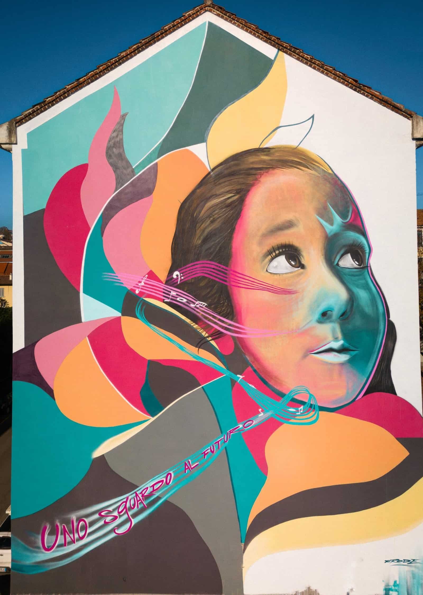 Si intitola “Uno sguardo al futuro” la nuova opera che Frode ha realizzato su una delle facciate esterne dell’Istituto Comprensivo Gino Capponi di Milano. Un’operazione bella non solo perché partecipata, realizzata cioè con i bambini e le bambine della scuola in un percorso condiviso con i docenti, gli educatori e l’artista, ma anche perché portatrice di valori di sostenibilità sociale e ambientale, con la ferma volontà di sensibilizzare e coinvolgere le nuove generazioni e catturare il loro sguardo sui grandi temi del futuro.