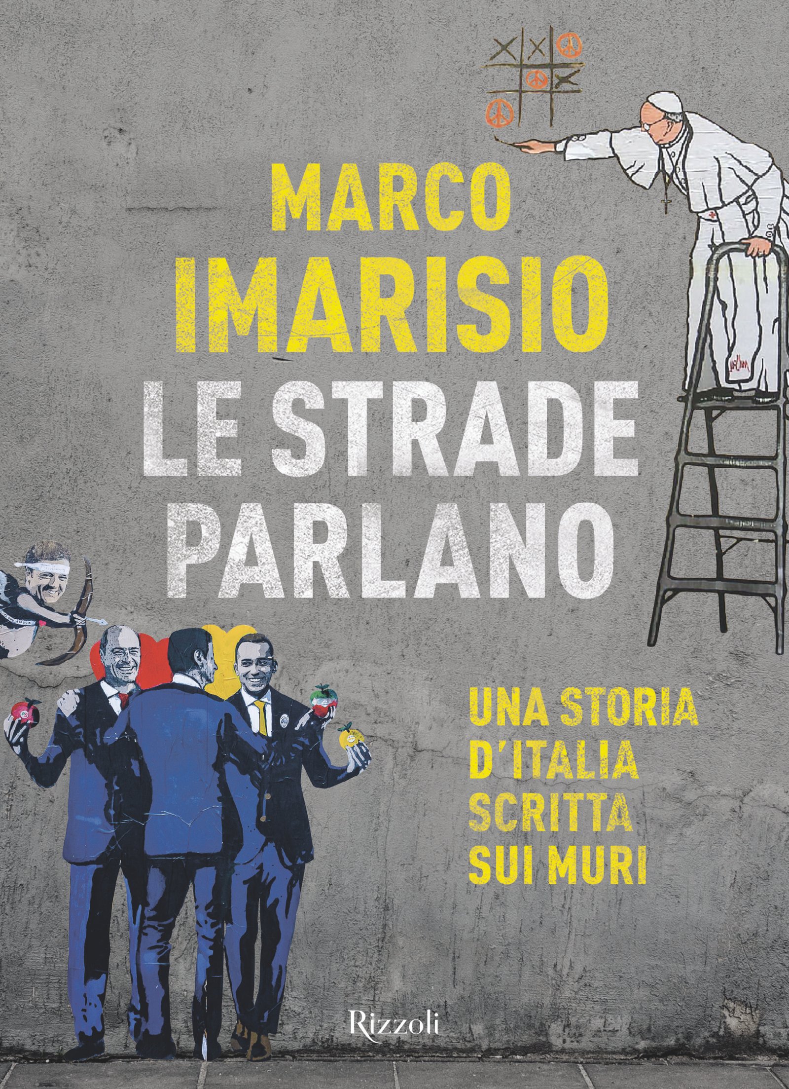 “Questo libro – dicono gli organizzatori – nasce da un’idea originale. Marco Imarisio, che da vent’anni racconta l’Italia giorno dopo giorno, si lascia ispirare dall’arte urbana per cogliere i fenomeni più significativi del nostro tempo dall’immigrazione alle battaglie per i diritti, dalle questioni “a margine” (TAV, trivelle…) agli eroi come Totti, Maradona e Pavarotti. Se poi i poster estemporanei di TvBoy leggono lucidamente la vita politica del Paese, gli occhi tristi del contadino ritratto da Vhils sui silos del porto di Catania ci portano alle vicende della Diciotti e della Aquarius che sono state bloccate proprio lì davanti. Armando Cossutta in versione Andy Warhol fa pensare alla trasfigurazione di un’ideologia, oggi tanto mutata rispetto al secolo scorso. Al contrario, le sfumature di nero e di grigio del cadavere di Moro o del ritratto di Falcone e Borsellino ci ricordano lutti che la nostra società non potrà mai elaborare. Ricchissimo di immagini preziose (alcuni dei murales riportati non esistono più e ne sono state recuperate rare foto da archivi specializzati), “Le strade parlano” è un libro unico per capire quanto siamo cambiati nell’ultimo quarto di secolo, come si siano evolute le nostre città – da una Milano all’avanguardia europea, ma ancora memore di luci e ombre del suo passato, a una Genova sempre ferita, tra G8 e Ponte Morandi – e quali fattori abbiano forgiato immaginario, bisogni e desideri di tutti noi.