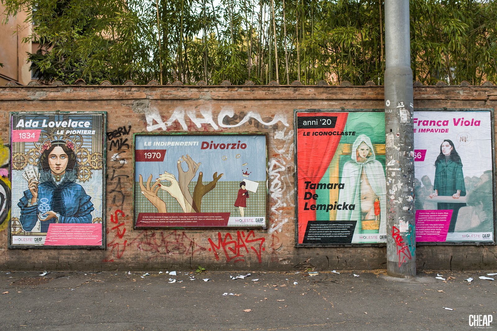 Indipendenza. Resistenza. Autodeterminazione. La poster art di CHEAP e Moleste si focalizza, insomma, sui principii che hanno mosso oceani di cambiamenti epocali (e, soprattutto, femminili) dall’Ottocento ai giorni nostri.