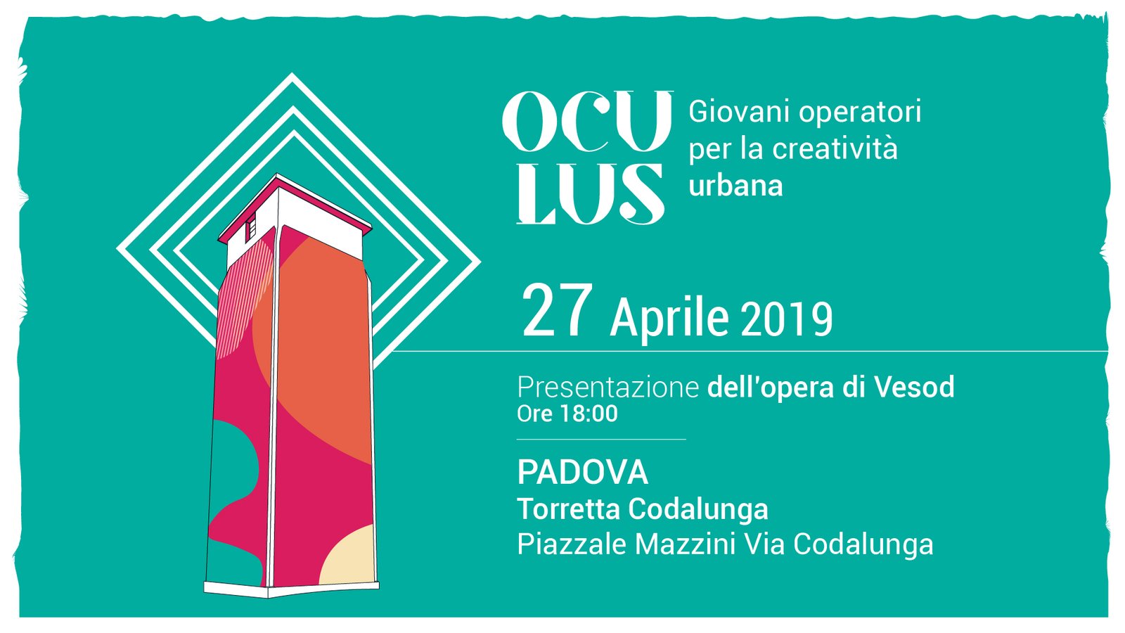 Ve lo ricordate Oculus, il programma nazionale di formazione per Operatori per la Creatività Urbana che aveva coinvolto 40 giovani provenienti da tutta Italia tra Torino, Bergamo, Trieste e Napoli? Ebbene, nulla di quanto fino a quel momento fatto si è fermato alla fine delle giornate di formazione: da oggi fino al 27 aprile, infatti, la città di Padova si trasfomerà nel punto di arrivo dell’intero progetto ospitando l’opera dell’artista Vesod Brero sulla torretta idrica di Viale Codalunga, con il patrocinio del Comune di Padova, la collaborazione di AcegasApsAmga e il lavoro ininterrotto dei 40 giorni di cui sopra.