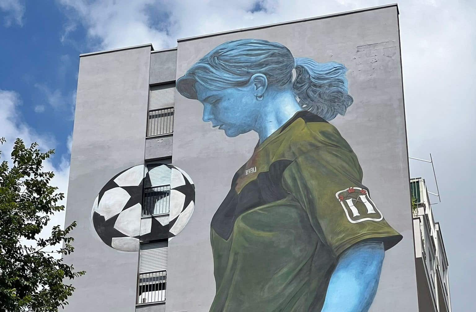È dedicata allo sport come strumento di integrazione e di riscatto, soprattutto per i giovani del quartiere, l’opera di Leticia Mandragora, che propone una riflessione intorno al linguaggio del corpo e ai valori dello sport, capaci di abbattere le barriere e di unire al di là delle differenze linguistiche e culturali del multietnico quartiere del Gallaratese. Tematica, questa, proposta dall’Hub Spazio Indifesa, gestito da Terre des Hommes, insieme alla scuola San Leo Kick Boxing e al progetto di calcio popolare Partizan Bonola, che conta anche una squadra femminile.