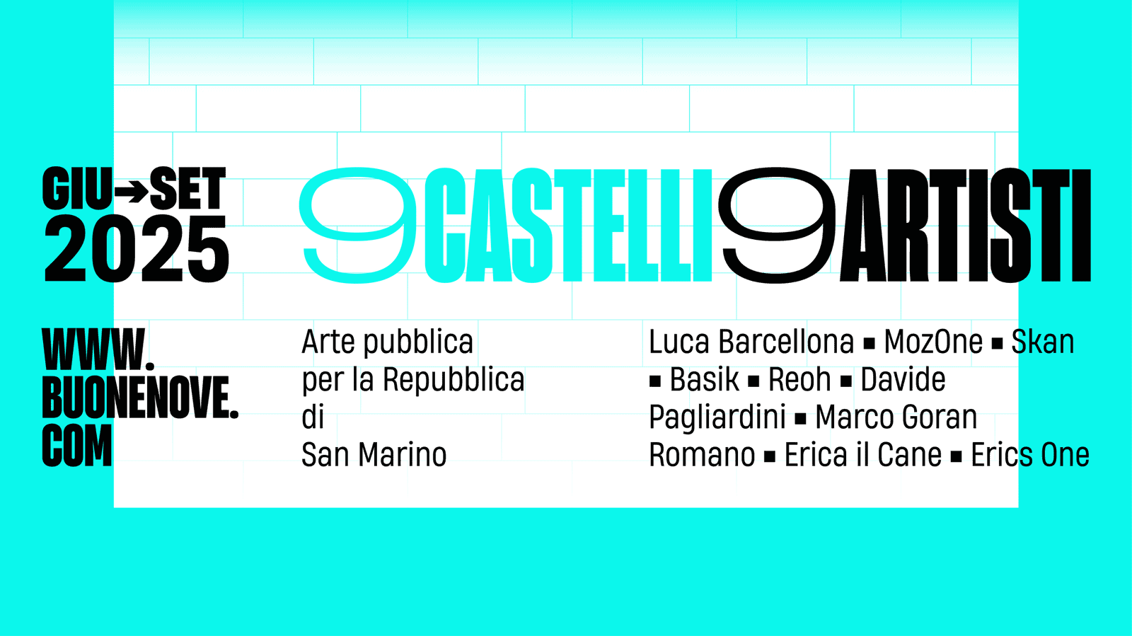 Sì, perché BUONENOVE è il primo evento diffuso di Arte Urbana della Repubblica di San Marino che, dal 14 giugno fino alla fine del mese di settembre, sta vedendo nove artisti di rilievo nazionale e internazionale realizzare interventi site-specific in ciascuno dei nove Castelli (più o meno come i nostri comuni), trasformando muri, pareti e superfici urbane in opere d’arte permanenti.
