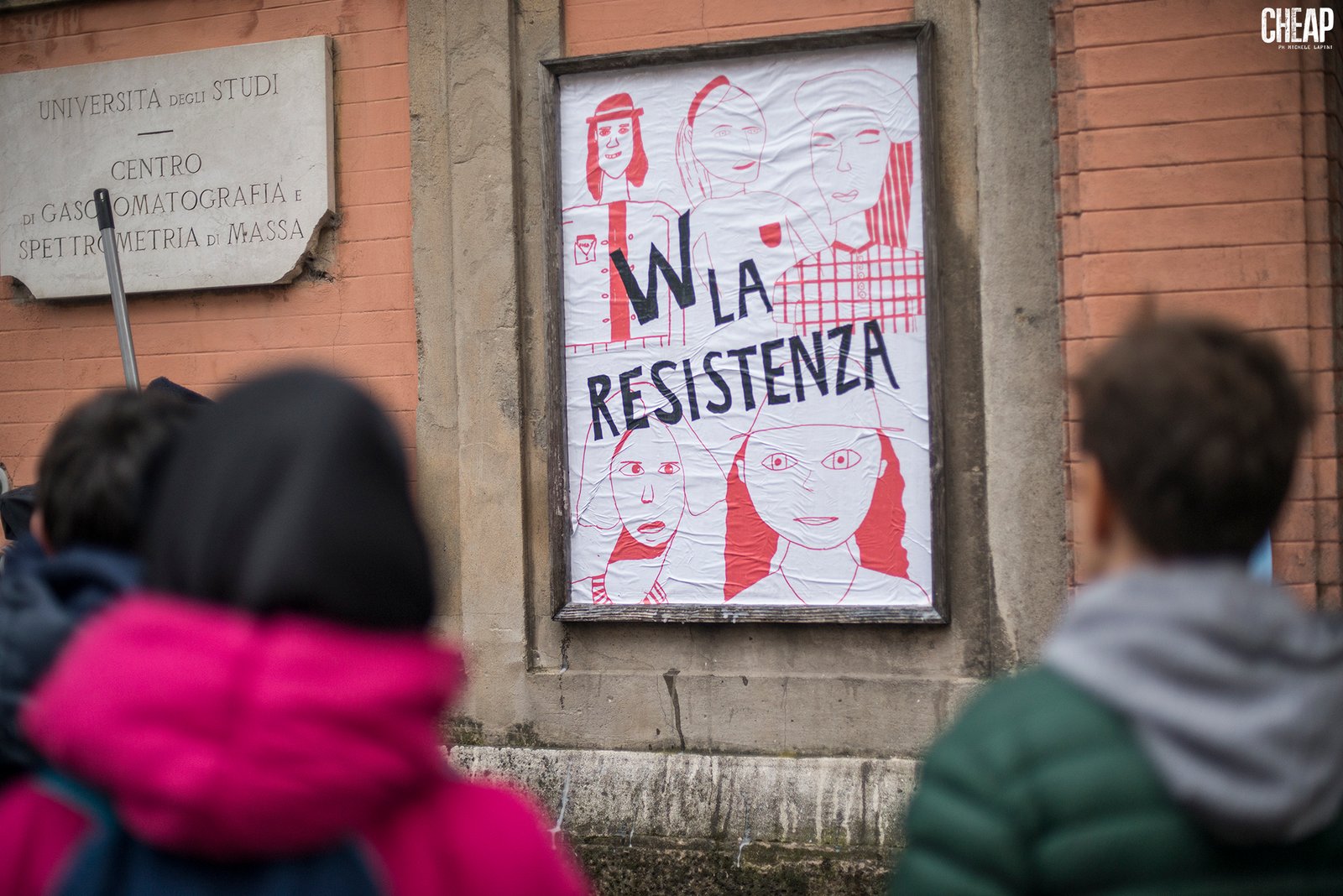 “Le ragazze e i ragazzi coinvolti – spiegano gli organizzatori – hanno letto fumetti, ascoltato storie, guardato fotografie e documentari, si sono posti delle domande e si sono immersi nelle vite di queste donne combattenti del territorio emiliano romagnolo entrando nel flusso storico con un lavoro individuale e successivamente di gruppo, guidati dall’autore Federico Manzone, che ha portato alla creazione dell’installazione di Via San Giacomo che è stata realizzata in collaborazione con CHEAP street poster art.