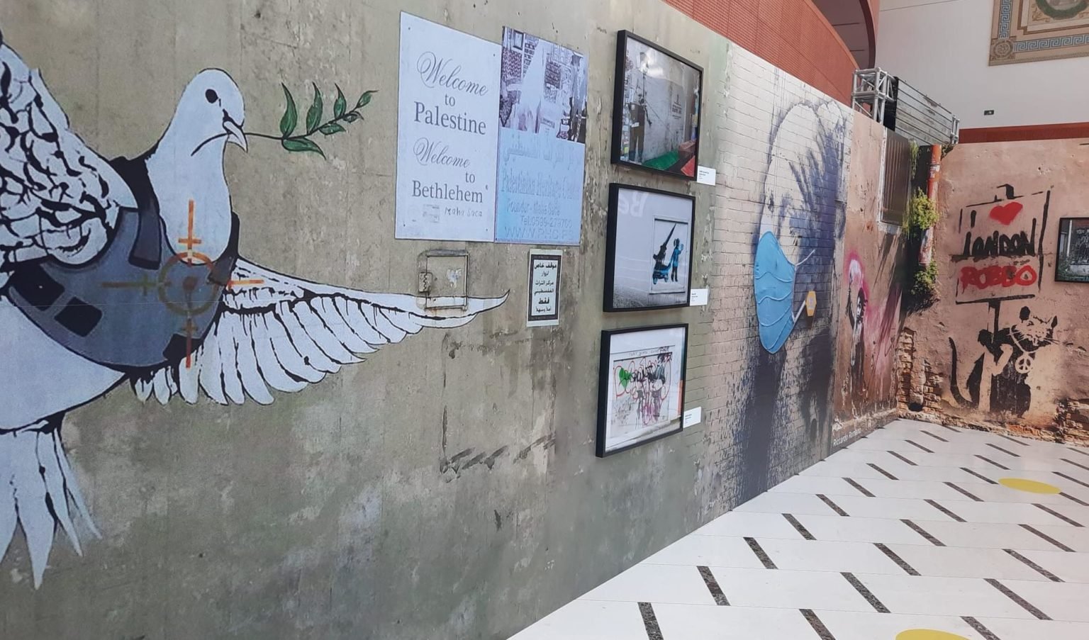 Opera che, per altro, è uno stacco di 111×377 cm da un muro di Bologna, ma non mancano segnaletica stradale (divelta, suppongo) con stencil di Banksy, saracinesche smontate con opere di Blu, uno stacco di affresco sempre di Blu e fotografie varie di opere di Banksy di grandi dimensioni (grazie al cielo o ci saremmo trovati pezzi di muri da Bristol o dalla barriera tra Israele e la Striscia di Gaza).