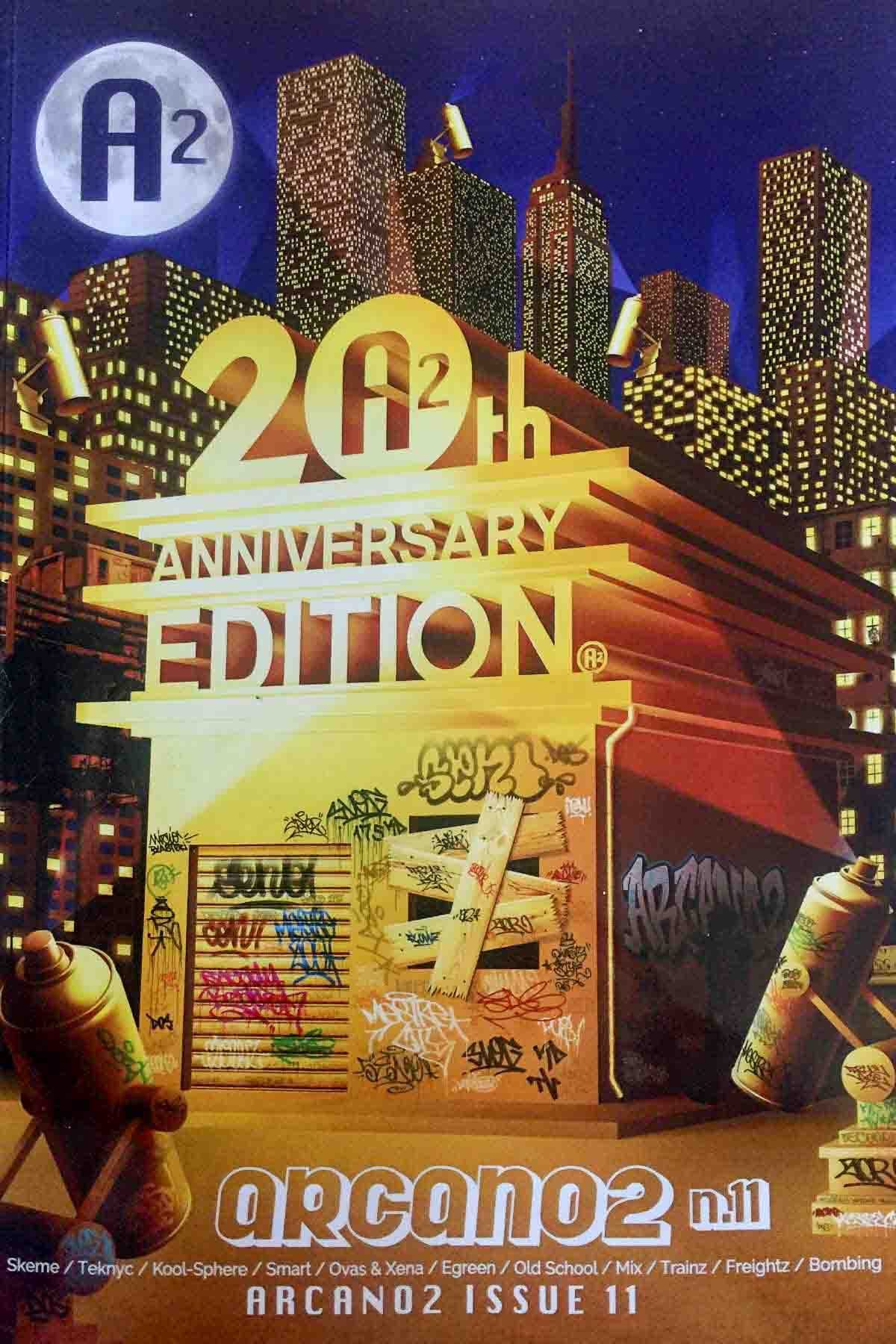 L’anno di inizio è il 1997: in quel periodo di riviste ce n’erano tantissime, più a livello internazionale che in Italia, dove c’erano solo “Tribe” e “Aelle”. Sull’onda dell’emozione ci siamo quindi chiesti: “Perché non possiamo farlo anche noi?”. L’inizio è stato rustico e casalingo: avevamo messo insieme una rivista fotocopiata in bianco e nero e distribuita in 300 copie che dopo poco, grazie all’aiuto del ragazzo che allora si occupava della grafica che conosceva una tipografia, si è trasformata in una rivista con una parte di pagine a colori stampata in 1500/2000 copie. Ma il numero zero di questo nuovo corso è stato un piccolo insuccesso, forse perché il progetto non era ancora ai livelli di altre riviste e forse perché aveva ancora alcune pagine in bianco e nero. A questo devi aggiungere che eravamo ancora inesperti, non sapevamo nulla di distribuzione, ci affidavamo agli amici, organizzavamo scambi e niente più. All’epoca ci chiamavamo ancora Arcano Revue, eravamo un’altra crew (alla quale siamo sopravvissuti solo io e Danilo, Slog175) con la quale abbiamo creato i numeri 0 e 1. Dopo poco, però, ci siamo divisi e a quel punto siamo ripartiti come Arcano2. Tanti ci chiedono perché “Arcano2”: volevamo mantenere una parte del nome originario che come si sa indica qualcosa di segreto, misterioso, di non facile e immediato riconoscimento che per essere scoperto deve essere inseguito con passione. Il 2, invece, non ha nulla a che fare col Writing, ma segna la ripartenza, lo stacco, un nuovo inizio.