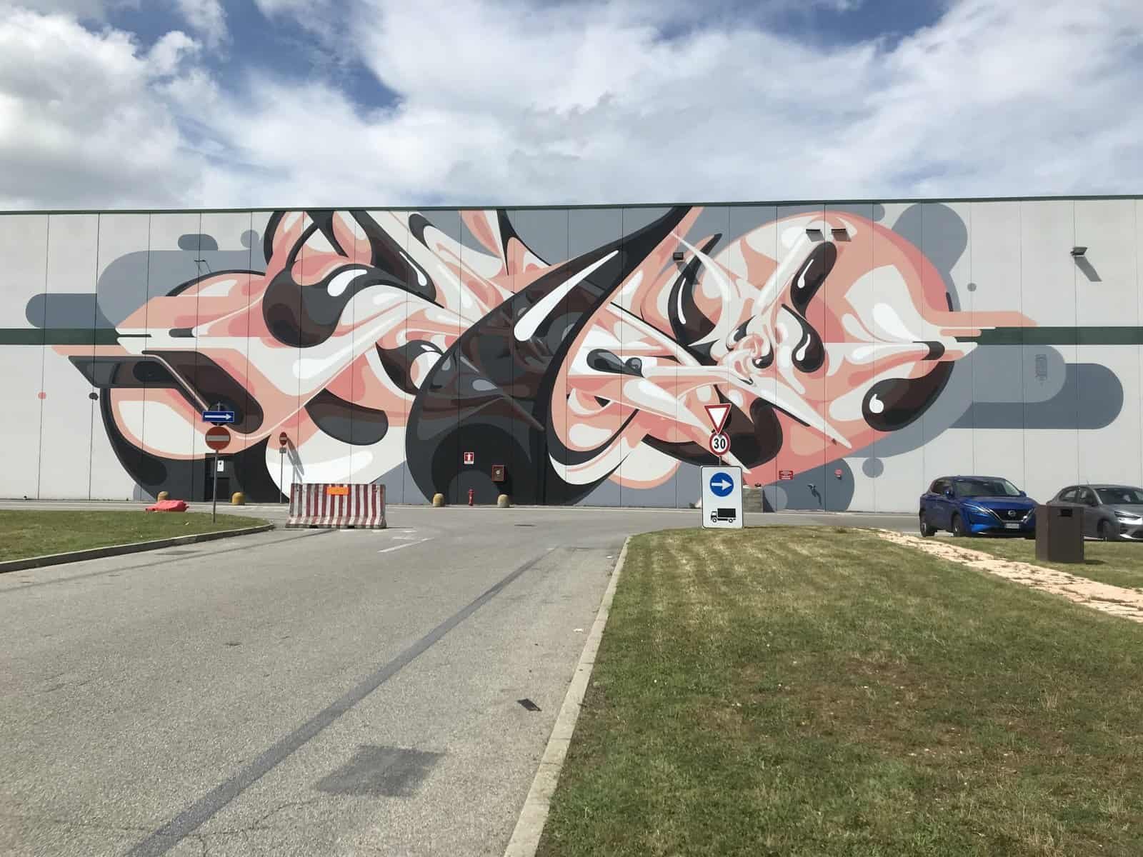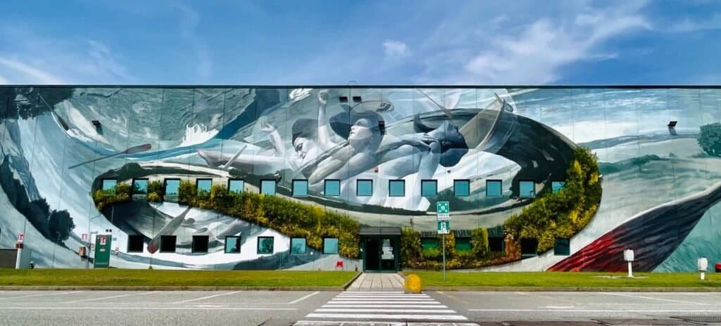 Una filosofia che viene abbracciata da Prologis in tutto il mondo, a partire dal 2019, Italia compresa, come mi racconta Sandro: “Dopo una retreat di tutto il senior management, durante la quale viene data la notizia del cambio di rotta, torno dalla California in Italia e, insieme ai colleghi, penso a cosa possiamo mettere in campo per dare vita alla filosofia di PARKlife™ anche da noi. Capito a Pisa e, nel tragitto verso un ristorante, vedo per la prima volta dal vivo Tuttomondo di Keith Haring. Da lì la folgorazione: torno a Milano, parlo dell’idea dei murales alle colleghe Claudia Montanari e Margaryta Hnatenko (e ci tengo a sottolinearlo, perché quelle da cui ho avuto feedback di valore sono sempre state tutte donne) e iniziamo a pensare a chi rivolgerci. Prima abbiamo pensato di contattare singoli artisti che avevamo più o meno conosciuto, poi Claudia si è ricordata di avere frequentato la scuola con Enrico Sironi (in arte Hemo), che fa il curatore di mostre e che di artisti ne conosce tanti. Lo invitiamo ed Enrico accetta di venire: si presenta, ci piace e iniziamo a lavorare assieme”. Correva l’anno 2021 e, in pieno Covid, i lavori iniziano a prendere vita a Lodi e poi a Romentino, ospiti i grandi nomi che ho avuto modo di elencare poco sopra.