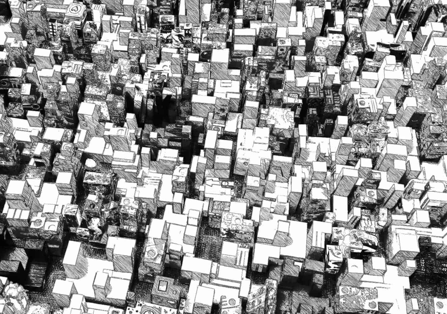 Si tratta, in quest’ultimo caso, di un lungo percorso che, negli anni, ha portato l’artista a pensare, evolvere e infine realizzare un enorme progetto di arte collettiva e partecipata in grado di essere autonoma e itinerante. Tutto parte da un pattern urbano composto da moduli spaziali singoli, ossia da forme di cubi e parallelepipedi realizzate dall’artista recuperando cartone di scarto: grazie alla loro riproduzione, fedele ma sempre diversa, Federico ha dato vita a un’enorme quantità di moduli che, a partire dal 2018, sono stati affidati ad artisti e bambini perché li reinterpretassero in maniera artistica e diventassero un’unica, enorme opera d’arte contemporanea. E così, mentre i primi hanno lavorato applicando la proprio cifra stilistica ai moduli affidati, i secondi, in età scolare, tutti seguiti da un team di esperti durante laboratori e classi nei principali istituti scolastici, hanno potuto esprimere sé stessi e la propria creatività in maniera libera e spontanea, mettendosi alla prova con i “grandi” e allo stesso tempo costruendo un dialogo coi loro.