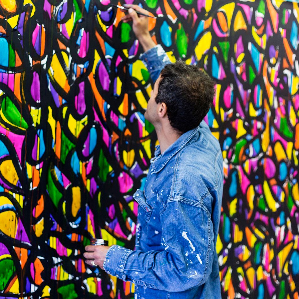 Si! Questa è la più bella e colorata mostra che abbia mai fatto in Italia in questo momento. È lo spettacolo di JonOne in Italia. Quello che posso dire su questa mostra è che volevo fare qualcosa di molto colorato, in modo che la gente possa venire qui e sorridere. Spesso nella vita le cose sono molto complicate, girano veloci in testa, ma qui sono voluto tornare a una dimensione umana, perché quadri sono una sorta di dimensione umana, le persone possono guardare le opere, pensare a se stessi, apprezzare e separarsi da tutto questo. Quando ho fatto questa mostra ho voluto dare prova di chi sono per imparare finalmente di più qui in Italia.